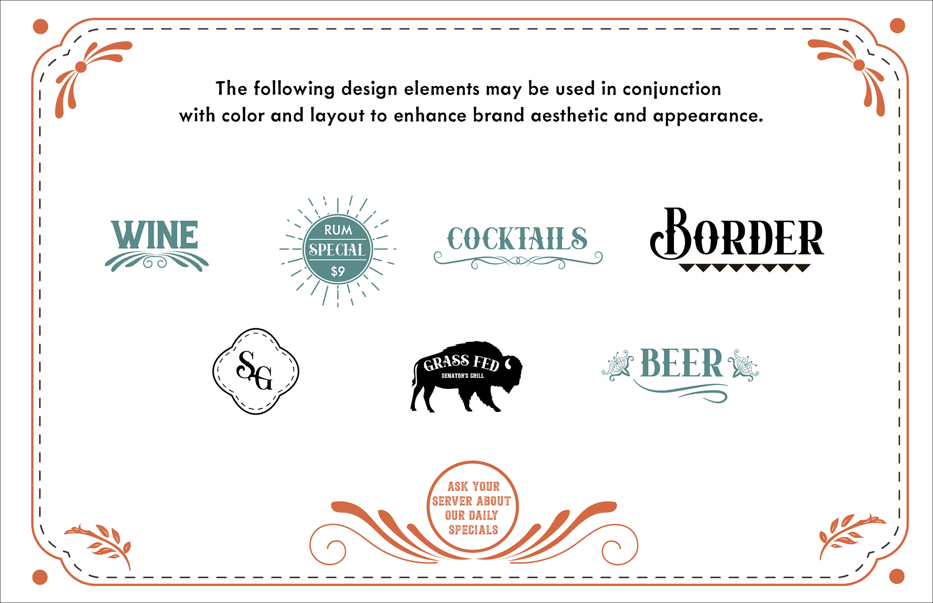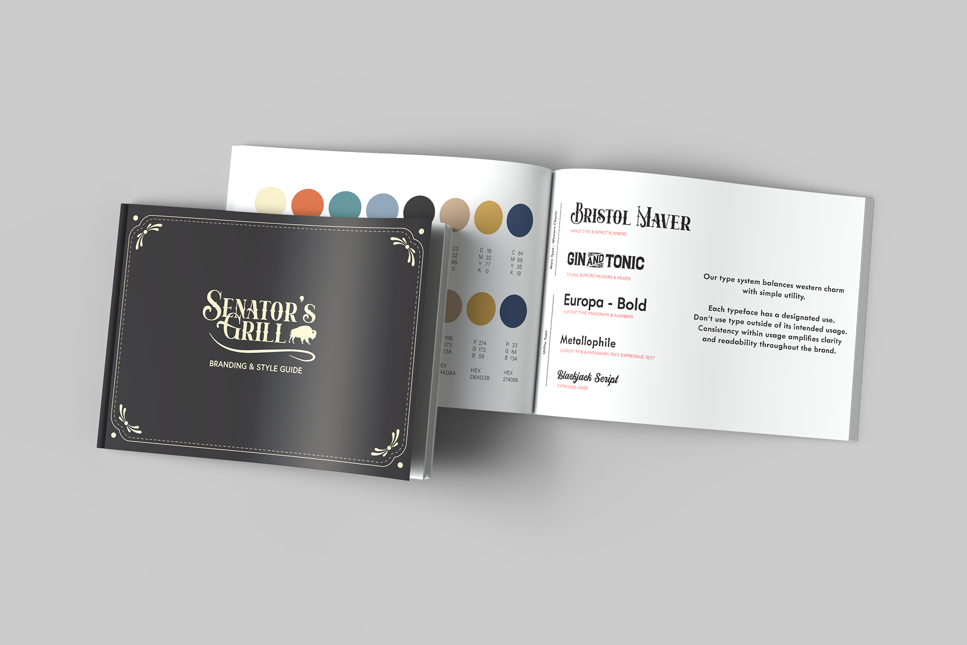 Original branding guide for Senator's Grill, based in Cheyenne Wyoming.